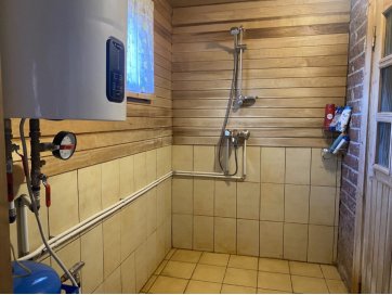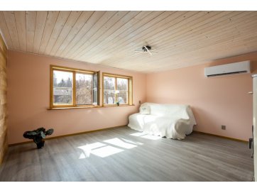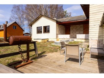 Kinnistul asub garaažiga maja koos kuuriga (Ehitisregistri andmetel aiamaja kood-120277731). Hoone üldpind on 111 m² ja köetav pind 49,6 m². Vesi ja kanalisatsioon on lokaalsed. Elekter on 3x380V, peakaitse 25A, majas 3 faasi. Hoones on 2 tuba, saun koos duširuumiga ja kuivkäimla. Vesi pumbatakse kaevust majja. Sooja vee saamiseks kasutatakse elektriboilerit. Renoveerimise käigus on WC ja köögi jaoks veetud torustik. Mööbel ja sanitaartehnika puudub. Aknad on vahetatud ühekordsete pakettakende vastu. Hoone all on kelder.