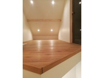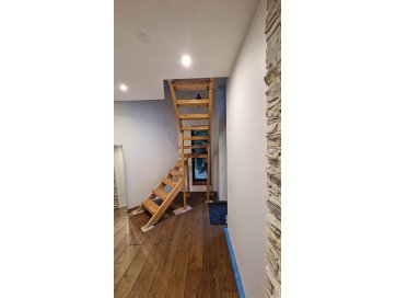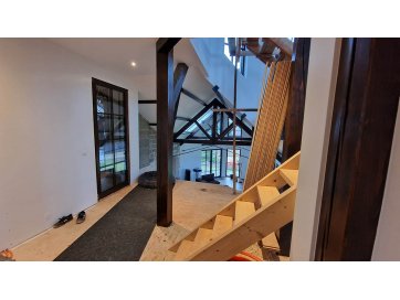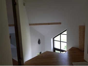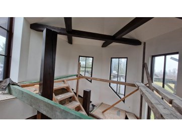 Esimese poolkorrusel on väljaehitamata sauna - ja basseiniruum, kus puuduvad välisseinad, aknad ja põrand (sh ka siseviimistlus). Teisel korrusel on trepihall, kust pääseb magamistuppa, ajutisest trepist väljaehitamata töötuppa ja teise magamistuppa, kus peaks olema perspektiivis ka vannituba koos WC, kuid ruumi ehitustööd on pooleli (osaliselt puuduvad siseseinad, uksed, siseviimistlus tööd on tegemata, kuid välissein on olemas). Teisest magamistoast pääseb esikusse, millest omakorda kolmandasse magamistuppa (ehitustööd on lõpetatud). Esikust pääseb teisest ajutisest trepist I korrusele. Töötoast pääseb katuserõdule, mis on lõpuni ehitamata.