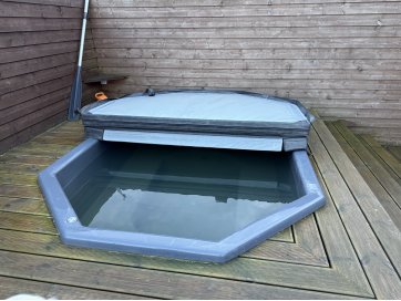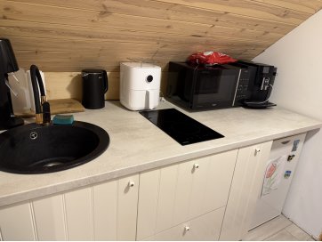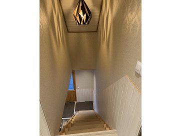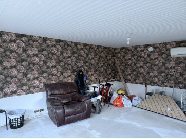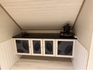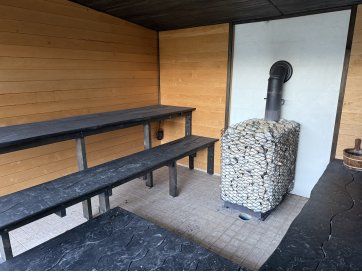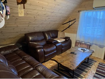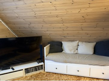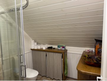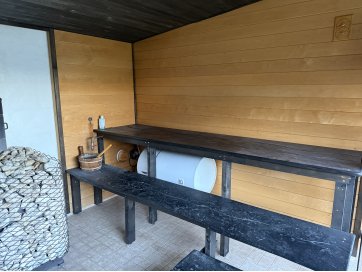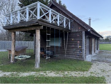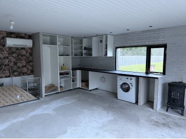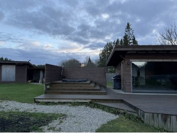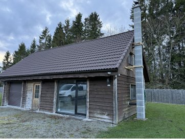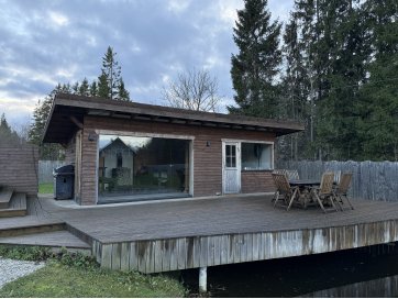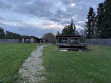garaaž-suvila, saunamaja, kuur. Kinnistul asub valge mängumaja, mis on teisaldatav ja ei jää müügi korral kinnistule. Garaaž-suvila on aastaringselt kasutuses elumajana. Hoones õhksoojuspumbad, vannitubades ja all esik-garderoobis põrandaküte. Alumisel korrusel on valmidus vesipõrandaküttele. Teisel korrusel on 3 tuba ja vannituba. Alumisel korrusel on lõpuni väljaehitamata köök-elutuba. Üldpind u 130 ruutmeetrit. Teise korrusega samal tasandil on suur rõdu. Saunahoones on eesruum, pesuruum ja leiliruum. Saunamajas õhksoojuspump, lisaks elektriline põrandaküte. Saunas on leiliruum, köetav õuest. Saunanoone terrassil on tünnisaun. Saunas elekter, internet. Sauna ees on tiik. Kuuris on elekter ja internetikaabel. Hooned heas seisukorras. Kogu kinnistut ümbriteseb puitaed. Ühise aiaga on piiratud 2 eraldi kinnistut.