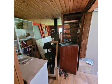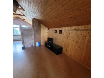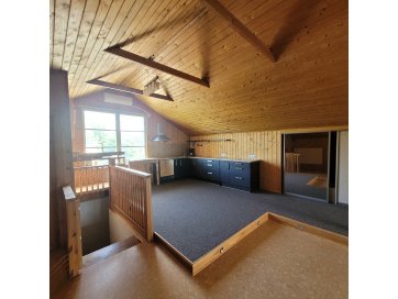 Pööningukorrus - üks suur ruum koos avatud kööginurgaga, san ruum.