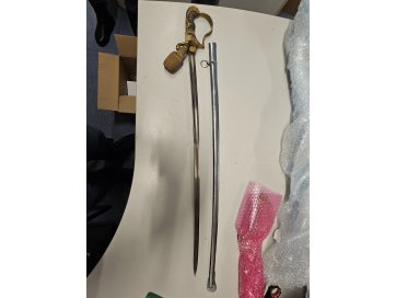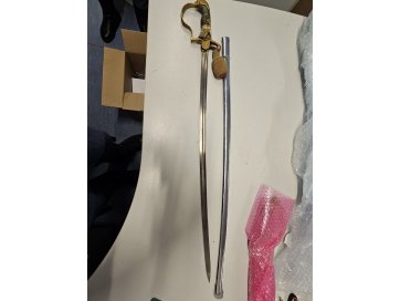 Kohtutäitur müüb avalikul elektroonilisel enampakkumisel Kohtutäiturite ja Pankrotihaldurite Koja oksjonikeskkonnas https://www.oksjonikeskus.ee vara: Kollase käepidemega saksa kahuriväe ohvitseri mõõk koos ehistutiga ja mõõga vutlar.