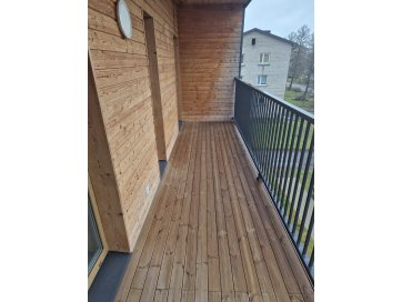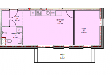 Tähistus nr 11, III korrusel asuv 2-toaline eluruum (elutuba, esik, tuba, vannituba/wc), 43.7 m2, rõdu 9.8 m2, 1 panipaik (P-11) 1 m2, 2 parkimiskohta nr 19 ja 20.